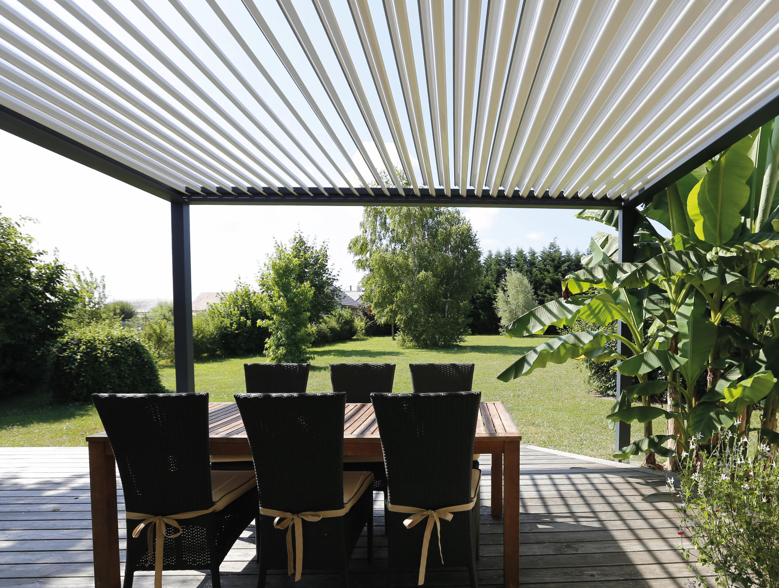 Le système de lames orientables ou rétractables vous permet d'adapter votre espace aux saisons et à vos envies.